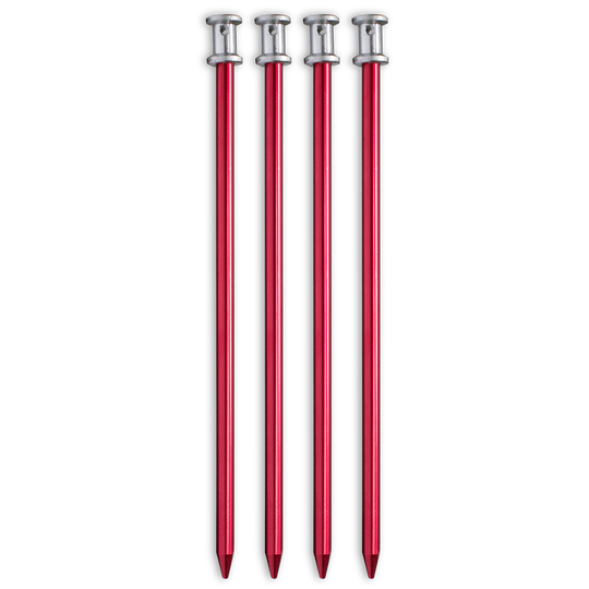 Rock Stakes - Ideal for hard and rocky ground. The extra-long, ribbed surface offers exceptional ground-hold for solid anchoring of large tents and shelters.