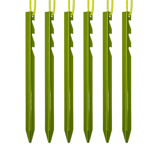 Aluminium Pegs - Lightweight tent pegs, usually with a thinner profile for lighter tents such as hiking tents or Aerospeed Air Tents.