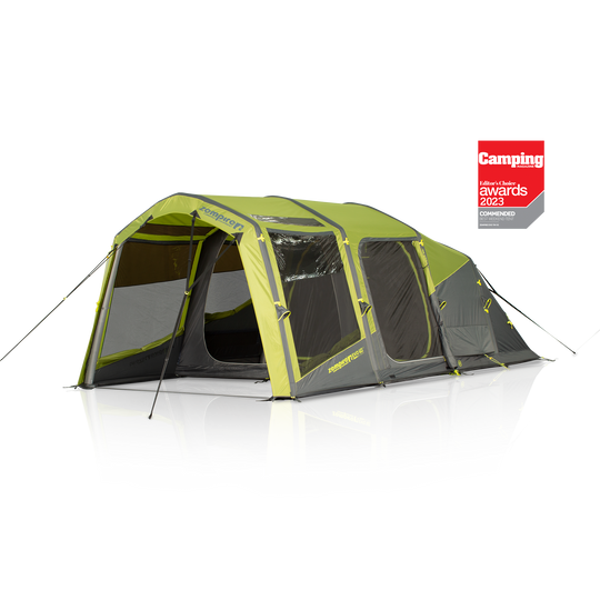 The Zempire Evo TM V2 Air Tent is a commended award-winner in the Best Weekend Tent category at the 2023 Camping Magazine Awards, offering a perfect balance of comfort, convenience, and performance. Whether you're a couple on a getaway or a small family looking for one of the best tents for weekend adventures, this inflatable tent delivers on every front. With a spacious front awning area, integrated PVC skylights, and exceptional ventilation, the Evo TM V2 Air Tent creates a bright and breathable interior space. The light-diffusing bedroom fabric ensures restful, undisturbed sleep—ideal for lazy mornings or midday naps—while the angled air beam construction improves both wind stability and internal headspace which is head-height, enhancing comfort in all conditions. Built for versatility, this Zempire inflatable tent features a convenient side access door for easier entry and exit, and is designed to connect seamlessly with optional accessories like awning wall sets or Evobase and Roadiebase shelters, expanding your livable space with ease. As one of Zempire’s most popular air tents, the Evo TM V2 combines innovative design with practical features, making it a top choice among the best inflatable tents in its class.