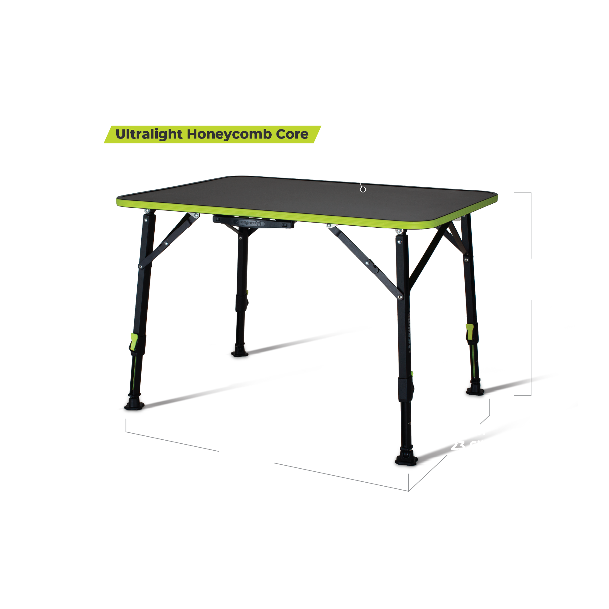 The Hexolite 80 lightweight camping table is built tough to handle the elements with an ultralight honeycomb core that keeps weight low for easy transportation. The 17mm weatherproof surface is our most durable for handling whatever Mother Nature throws at it. The Hexolite 80 has an ideal surface for cooking and meal prep and a wide base pivoting feet to provide more stability on uneven ground. Also, the table height can be adjusted and locked in with the flick of a lever on the individual legs. Our renowned built-in bottle opener is discreetly added to the bottom of the tabletop, so no need to pack any.