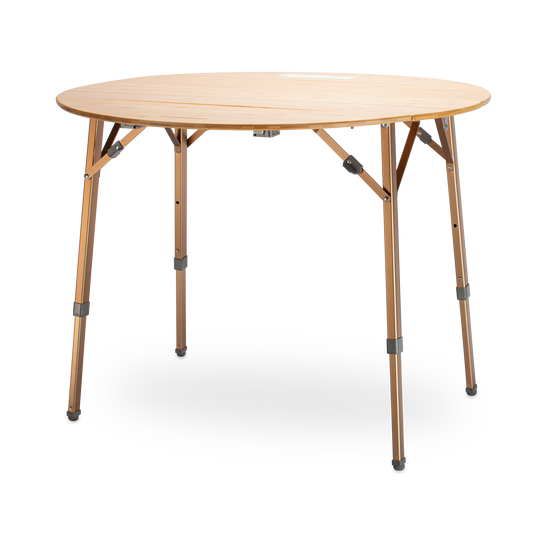There is nothing like a round table to gather around for a family meal or an evening game of cards. The Kitpac Round V2 offers an attractive and durable bamboo tabletop and folds down small, storing inside a compact carry bag. Adjustable legs allow the table to be used high for dining or drop down low to use as a coffee table. If all that is not enough it also features a built-in bottle opener!