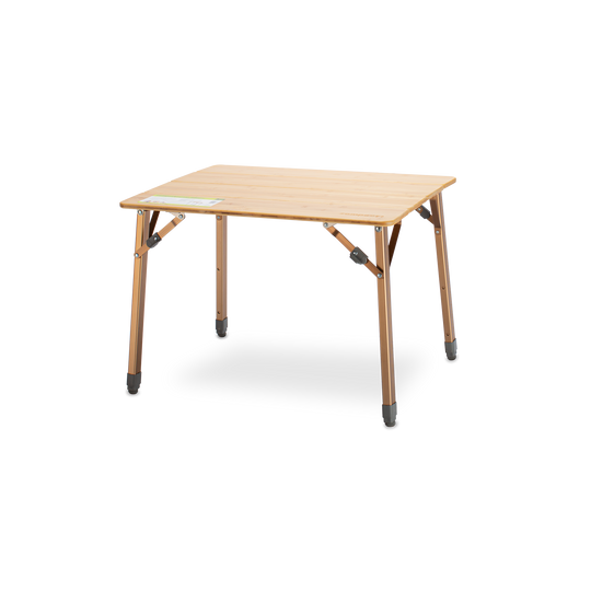 A folding camp table with a natural bamboo tabletop. The Kitpac Standard V2 folds in 4 & fits neatly into a durable carry bag. The square-profile aluminium frame is sturdy, lightweight & rust-resistant. Adjustable legs allow the table to be used at coffee table height & include micro-adjust feet for levelling on uneven surfaces. If that is not enough it also features a built-in bottle opener!