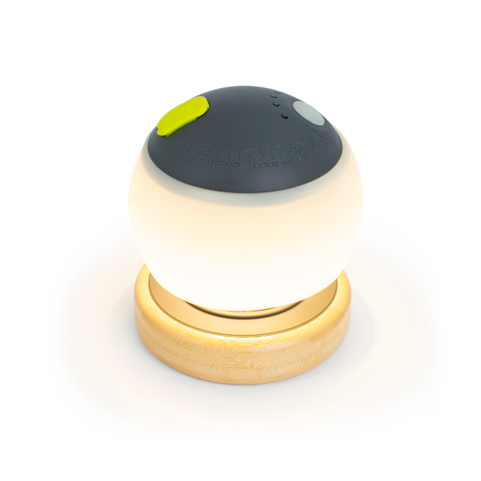 The Zempire Megadome 1000 is a powerful and stylish camp lantern, designed to elevate your camping light setup. Featuring a stable bamboo base and a soft-touch diffuser, it provides warm, ambient lighting with minimal mosquito attraction. With three brightness settings ranging from 220 to 1000 lumens, this versatile camp light is perfect for both indoor and outdoor use. The built-in USB-C port doubles as a power bank, making it an essential piece of camping lighting gear.